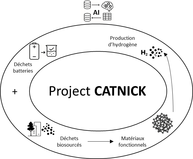 Le projet CATNICK propose une recherche innovante axée sur le développement de matériaux électrocatalytiques avancés pour la production durable d’hydrogène. L’idée centrale est de valoriser des flux de déchets industriels, notamment des composants de batteries lithium-ion et des polymères biosourcés, pour créer de nouveaux catalyseurs destinés à la réaction d’oxydation de l’eau (OER) en milieu alcalin.