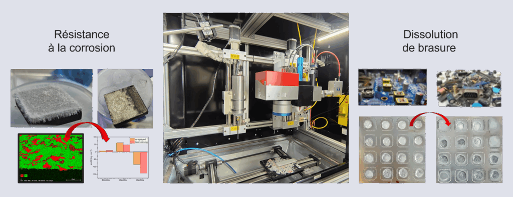 La découverte accélérée de matériaux est un enjeu crucial dans des secteurs stratégiques tels que l’énergie, les transports et le numérique. Face à l’appauvrissement des ressources, il est nécessaire de repenser la conception des matériaux pour augmenter la durée de vie des équipements, tout en garantissant qu’ils soient réparables et recyclables. Le projet EC-Alloys propose une approche innovante en s’écartant des méthodes traditionnelles de fabrication des matériaux métalliques, en combinant une approche combinatoire et un post-traitement pour créer une large gamme d’alliages. Cette méthode permet de produire rapidement et à faible coût de nombreux composites métalliques. L’objectif est de déterminer les post-traitements nécessaires pour transformer ces composites en alliages performants et de les caractériser.